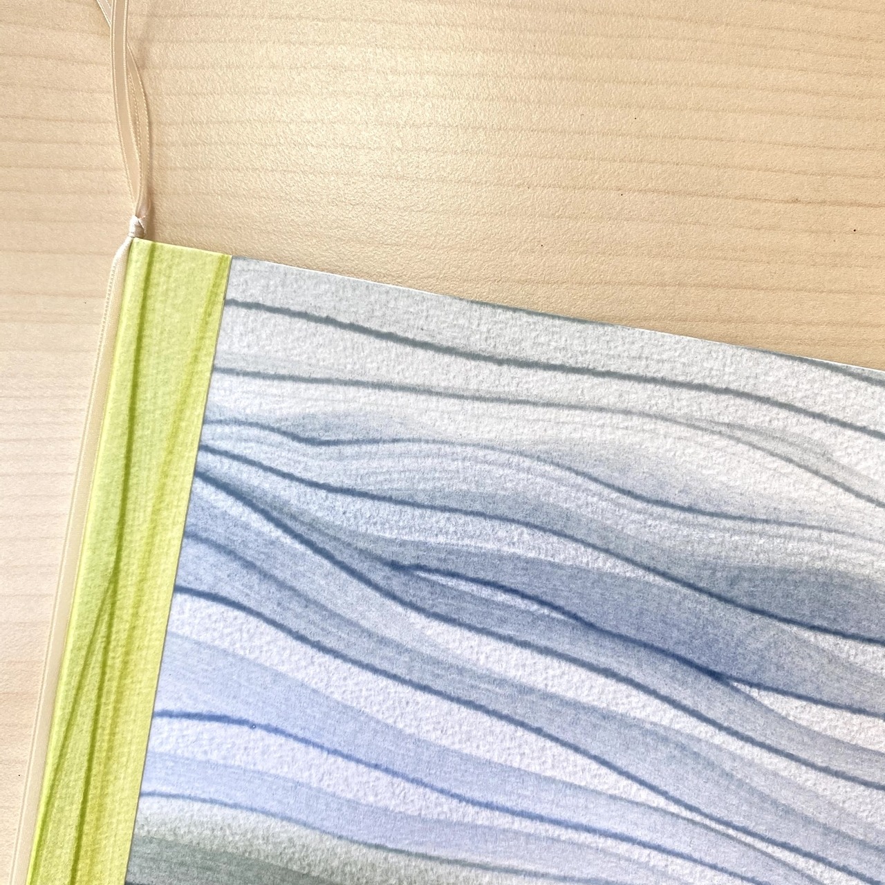 表紙のペーストペーパーは1枚ずつ紙を染めているので同じデザインは二つとありません。世界に一つだけのもので譜面台が華やかになります。