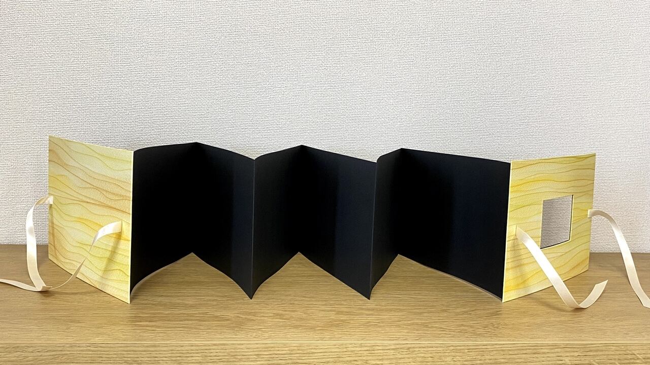 アコーディオン型なので、広げれば何枚も一度に見ることができ、立てて飾ることもできます。